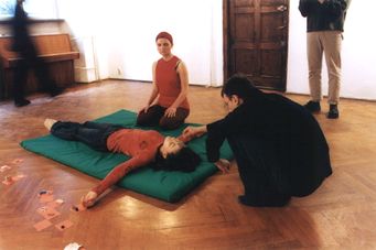 Po wejściu do galerii możesz poddać się masażowi shiatsu, który min. likwiduje stresy i napięcia. Następnie po tej terapii, proponuję abyś leżał przez chwilę na plecach, a ja wybiorę drobny przedmiot i umieszczę go na moment na Twoim czole. Cóż to może być za przedmiot? Być może będzie to oderwane ucho od kubka lub też dwucentymetrowy niebieski pantofelek, a być może będzie to guzik od mojej kurtki. Chciałbym abyś mógł poczuć energię własnego ciała i doświadczyć w tym stanie istnienia drobiazgów, ciągle będących w orbicie naszej aktywności, mających własną autonomię. Może pod wpływem całego działania, odkryjesz w swoim życiu podobne formy i zjawiska, niezauważalnie wpasowujące się w nasze życie, nie docierające do naszej świadomości, a jednak posiadające swoją własną, niecodzienną realność.