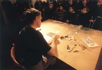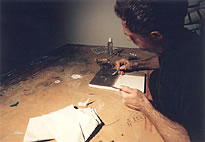 Na spotkaniu warsztatowym 10.12. Piotr Dumała zaprezentował swoją technikę animacji na płytach gipsowych.