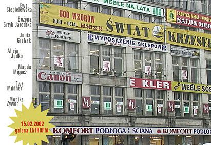 Komfort jest pojmowany jako zestaw urządzeń i warunków zapewniających wygodę i zaspokajających wymagania estetyczne. Niewątpliwie tyle może być rozmaitych kombinacji i zestawów urządzeń i warunków, ile indywidualnych upodobań. Ale czy poczucie wygody zależy wyłącznie od odpowiedniej scenografii, najtrafniejszego zbioru rzeczy ? Czy jest prostą, nieomalże automatyczną reakcją podmiotu na zestaw przedmiotów ? Czy nie jest, w conajmniej równej mierze, efektem postawy duchowej ? Czy może oderwać się od rzeczy i uniezależnić od warunków ? Tytuł wystawy przewrotnie sugeruje zawężenie pola poszukiwań do ściany i podłogi. Autorki - Ewa Ciepielewska, Bożena Grzyb-Jarodzka, Julita Gielzak, Alicja Jodko, Magda Migacz, Ewa Mildner i Monika Zywer - nie udzielaja prostej i jednoznacznej odpowiedzi, wychodząc poza domenę przedmiotów użytkowych, a nawet przedmiotów sztuki.