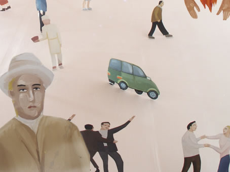 Bohaterowie mojej wystawy są bardzo podobni do mnie: na co dzień miotam się, biegam w sprawach "pilnych" a głowę mam pełną urojeń. Nie mam specjalnego zapału do zmieniania schematów myślenia. Cieszę się raczej, że udało się jeszcze jeden dzień przeżyć bez specjalnych dramatów i wpadek. Od czasu do czasu jednak wydarzy się jakaś katastrofa, ktoś lub coś wywraca mi życie do góry nogami, wtedy w mózgu otworzy się jakaś klapka albo przekręci trybik i trzeba zrezygnować z dotychczasowych poglądów i przekonań, podjąć próbę zmiany.