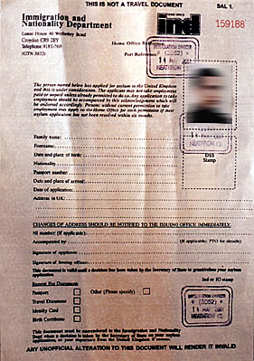 w poszukiwaniu pracy do Londynu , posługiwał się specjalnym dokumentem imigracyjnym
