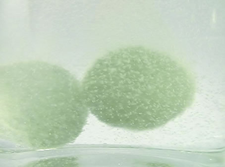 Pokazuję też film video, przedstawiający dwie musujące tabletki w szklance wody,