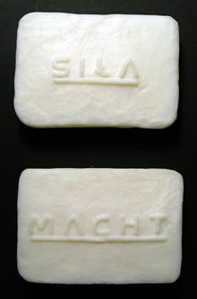 W świetle tego mydełka sygnowane słowem Siła jawią się jako narzędzia korekcji doskonale maskujące swe prawdziwe przeznaczenie poprzez swą nietrwałość. Sygnatura Siły podkreśla opresyjny charakter narzucanych czynności, łudząc na pierwszy rzut oka obietnicą zdobycia Siły tego kto jest z nami.