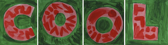 12 lat temu - nieustannie chciałem zrobić coś bardzo podobnego. Praca Pencka to kilkadziesiąt rysunków pędzlem na tekturkach "z odzysku", charakterystyczna dla jego stylistyki: nitkowate postacie, koła, linie itd. Ideał! Spełnienie marzeń. Odkrycie kwintesencji obrazu! W końcu to udźwignąłem. Przez dwa wieczory, 13 i 15 grudnia minionego roku namalowałem cool - 45 małych obrazków dedykowanych ABSTRAKCJI. Jest to całość. Kojarzy mi się z marszem polną drogą. Krok za krokiem, grzęznąc w piachu, potykając się o kamienie, idąc lepiej lub gorzej, ale do przodu. Żadna praca nie została odrzucona ani poprawiona. Istnieją jako proces, opisane i ponumerowane od 1 do 45. Słowo COOL rozumiem jako energia lub paliwo; w tym miejscu owym paliwem jest dla mnie próba abstrakcji. Dlaczego abstrakcja? W tej chwili abstrakcja