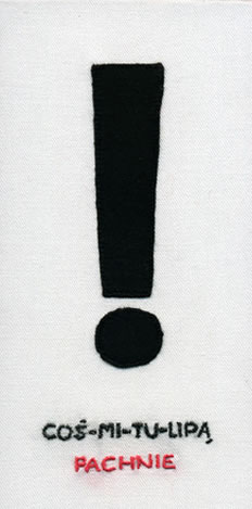 Seria perfumki powstała jako komentarz do zjawiska nieuczciwej konkurencji: wprowadzanie w błąd klienta poprzez nadawanie produktom jako identyfikatora etykiety" some like this", czyli bajka o designerskim podziemiu projektującym coś na bazie gotowego produktu: ma być trochę inaczej, ale na pierwszy rzut oka tak samo. Perfumki są wyrazem ambiwalentnych moich uczuć; bo żałosny jest świat rzecz udających inne rzeczy, erzaców nie mających własnej tożsamości zżałosnymi nazwami przekręconymi z oryginałów w absurdalne zbitki liter fonetycznie przypominające oryginał.Jest to zjawisko smutne i śmieszne zarazem, więc fascynujące dla mnie, jako grafika, bo postanowiłam stworzyć własną kolekcję, która poza tym, że będzie udawać coś , będzie całe to zjawisko komentować. Sytuacji, gdy jeden produkt udaje inny obserwujemy sporo i coraz więcej, zjawisko to jest wprost proporcjonalne do rozwoju rynku. Powstaje markowy produkt i im bardziej jest pożądany, tym chętniej będzie podrabiany. Wten sposób w pobieżnej obserwaccji zacierają się też granice między warstwami społecznymi.Zamożnych stać na oryginały, podróbki są dla tych zapatrzonych, chcących też dotknąć luksusu- oczywiście w innym przedziale cenowym. Dlatego mottem wystawy jest usłyszana w sklepie wypowiedź sprzedawcy zachwalającego towar pewnej klientce;" LUCCI to oryginalna firma. Niech Pani zwraca uwagę na metki, jak jest napisane "beauty" to znaczy, że to jest oryginalna rzecz z butiku projektanta." (LUCCI - GUCCI) Z wielu dziedzin, gdzie królują podróbki, plagiaty, erzace wybrałam bez kalkulacji bliski mojej pasji temat. Pasjonuję suię modą, a większość domów mody kreuje perfumy, więc jak zobaczyłam na dworcu PKP metalowe stojaki z podróbkami, to postanowiłam stworzyć własną kolekcję. Wyszywane są dlatego, że pomimo iż to podróbki, są wyjątkowe, niepowtarzalne, unikatowe poza tym lubię pracować z tkaniną. H.Kosewicz |