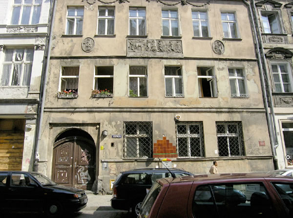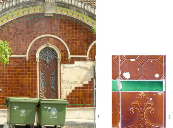 Projekt, który proponuję, zakłada przeniesienie 25 tradycyjnych, portugalskich kafli pochodzących ze starego portugalskiego budynku (1924) na fasadę budynku, w którym znajduje się Galeria Entropia. Moim zamiarem było zbadanie intensywności wyrwanego z kontekstu obiektu w aspekcie towarzyszących temu emocji, afektów i wspomnień. Teresa Luzio "Przeniesienie kafli z Portugali do Polski 2006" |