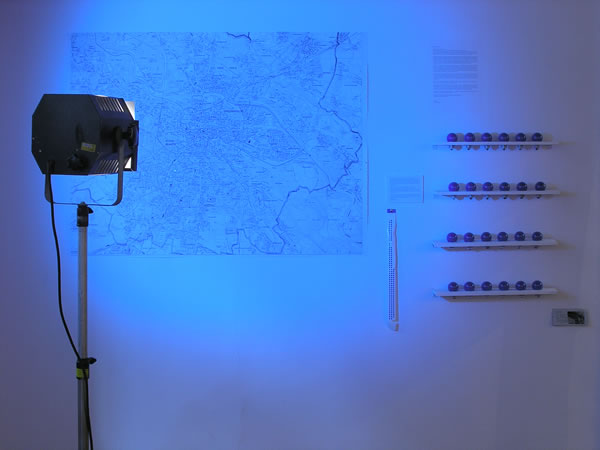 W swoim bagażu przywiozłam do Wrocławia sto niebieskich żarówek. Przed przyjazdem, na wszystkie adresy jakie znałam we Wroclawiu rozsyłałam prezentowany list. Poprzez przekaz ustny, przesyłany list oraz wernisaż wystawy w galerii, żarowki te będą rozprowadzone w mieście, świecąc i przez dwa tygodnie czyniąc widoczną sieć ludzi, których mogłam poznać podczas mojej podróży. Zapraszam do udziału w tym projekcie poprzez zabranie jednej niebieskiej żarówki do domu, zastąpienie nią zwykłej żarówki i pozostawienie jej włączonej do 27go września, dnia zakończenia wystawy. Możecie Państwo oznaczyć niebieską naklejką na mapie miejsce, w którym umieścicie żarówkę. Jeżeli chcieliby Państwo uzyskać więcej informacji o projekcie lub otrzymać kopię ostatecznego kszałtu mapy, proszę o pozostawienie Państwa adresu pocztowego lub emailowego w Galerii Entropia. Dziękuję bardzo,