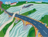 z przerzuconym nad nim kratownicowym mostem i malowniczymi półokrągłymi
