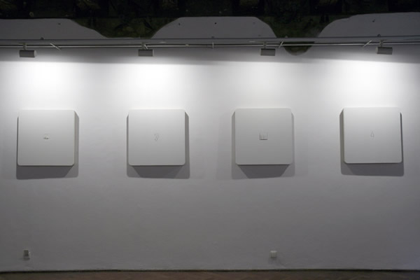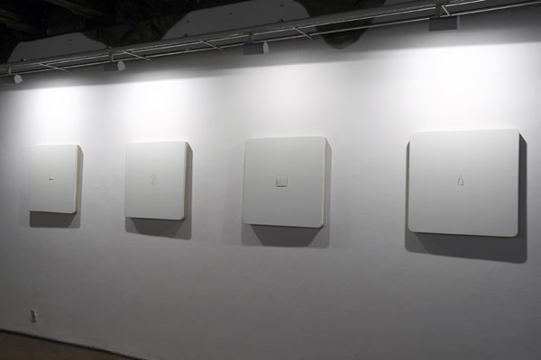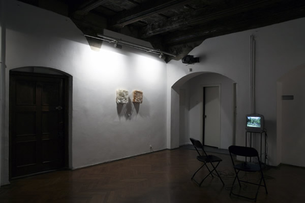 | w pomieszczeniu za drzwiami: HAMLETPARTUMPSYMENELE 2008, głosy: Lawrence Oliver (Hamlet 1948) / Andrzej Partum, wykład, Warszawa 1979 / psy, Łomianki, zima 1980-1981 / nieznajomi pod oknem, Warszawa-Praga 2007 |